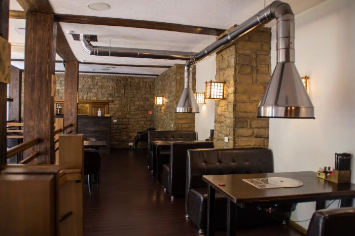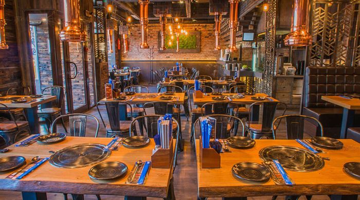 Особенностью ресторана является зал с корейским барбекю. На столе встроен гриль, посетителям предлагается самим приготовить стейк, рыбу.