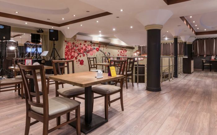 Можно зарезервировать зал для проведения торжеств, например, свадьба или юбилей. Площади позволяют устроить праздник с количеством приглашенных гостей до 100 человек. При этом не обязательно заказывать меню с блюдами только корейской кухни.
