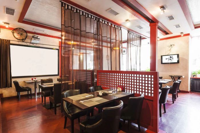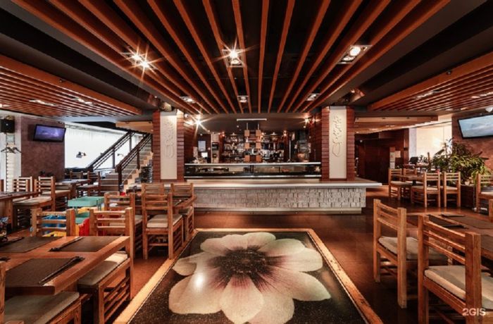 Ресторан японской кухни с красивым названием «Цветение сакуры» работает с 2007 года. Оформление интерьера — в красно-бело-черных тонах с диванами и креслами, обтянутыми кожей, деревянные столы, все – своеобразный посыл к истинно-японской культуре. Разделение на зоны оформлен легкими воздушными шторами, традиционными японскими ширмами. Тихая фоновая музыка настраивает на расслабление и наслаждение приготовленной умелыми руками едой. Посторонних запахов нет.