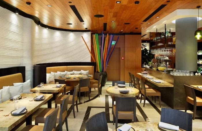 «Мару» — сеть ресторанов, всего 6 точек в Москве, объединенных одной концепций и единой японской кухней. Дизайн интерьеров современный, в стиле японского минимализма, строгий, лаконичный, ничего лишнего. Много дерева, камень, панорамные окна, рейки, лампы, все располагает к трапезе и душевным разговорам.